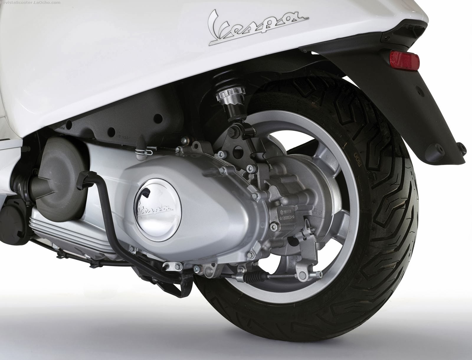 El nuevo arranque eléctrico de rueda libre es también más silencioso y eficiente, acorde a un motor con tamaña riqueza tecnológica. El embrague centrífugo automático en seco ha sido calibrado al objeto de maximizar el rendimiento y economizar combustible a baja velocidad. La primavera tiene un nuevo CVT (diseñado expresamente para la nueva Vespa) con el que se reduce la rotación del motor al cambiar de una velocidad a otra mayor. Esto reduce la velocidad en el cambio de marchas, mejora los niveles de consumo y el confort sin comprometer el rendimiento y la aceleración que distinguen a los motores de 4 tiempos. El motor de 3V tiene la importante ventaja de un peso inferior a su predecesor de 2V.